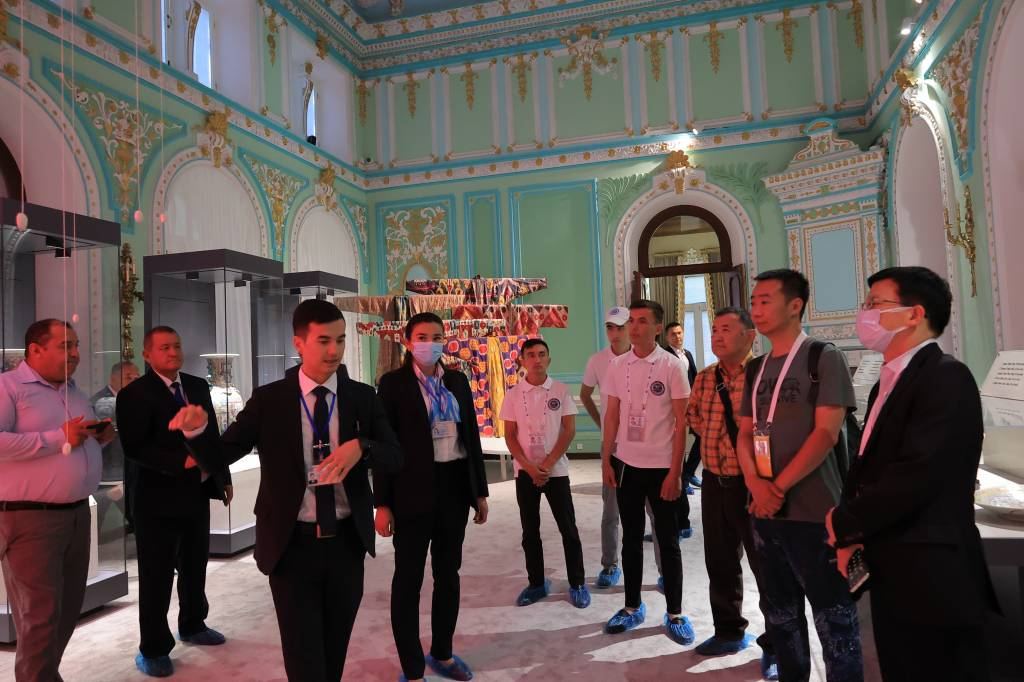 The exhibition also presents canvases dedicated to the theme of the Great Silk Road by the famous artist Sanjar Jabborov. The most important part of the exposition is a 7th-century composition depicting a Chinese princess heading in a boat towards Samarkand guarded by servants and bodyguards. This composition is an element of the wall paintings of Afrasiab.
