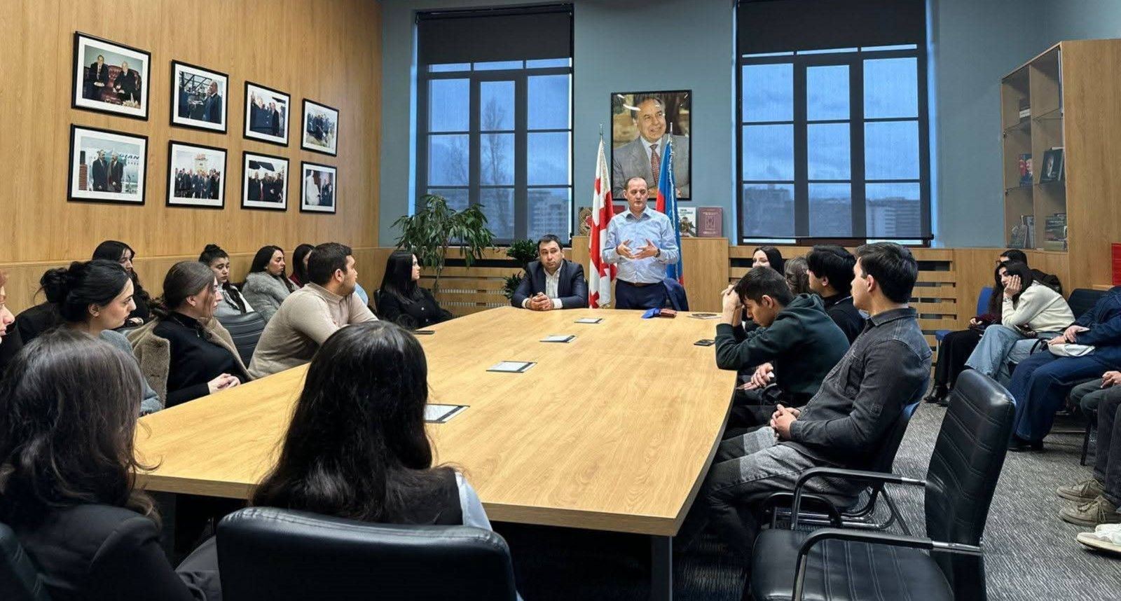 A meeting was held with Azerbaijani students at the Azerbaijan Center of Ivane Javakhishvili Tbilisi State University with Orkhan Hasanoglu, Chairman of the Azerbaijan–Turkish Republic of Northern Cyprus Friendship Society, Director of the Heydar Aliyev International Cultural Center operating in Northern Cyprus, and Director of the Multicultural Department of the International Final University.