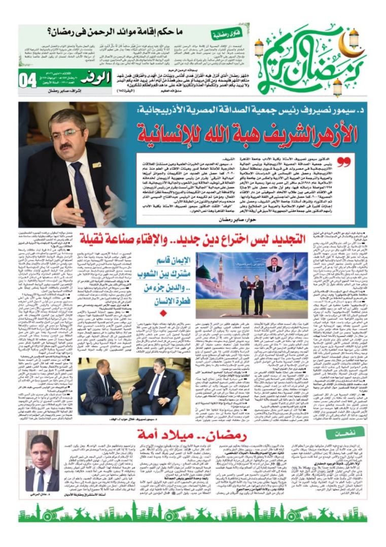 An extensive interview with Seymur Nasirov, Chairman of the Egypt-Azerbaijan Friendship Society and the Azerbaijani diaspora in Egypt, as well as a researcher-scholar, has been published in Egypt’s influential Al-Wafd newspaper.