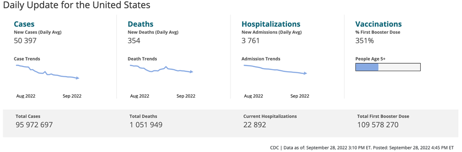 In the latest epidemiological update published on September 28, the number of new weekly cases decreased by 11 percent during the week of September 19 to September 25, as compared to the previous week, with over 3 million new cases reported. The number of new weekly deaths decreased by 18 percent, as compared to the previous week, with over 8,900 deaths reported.
